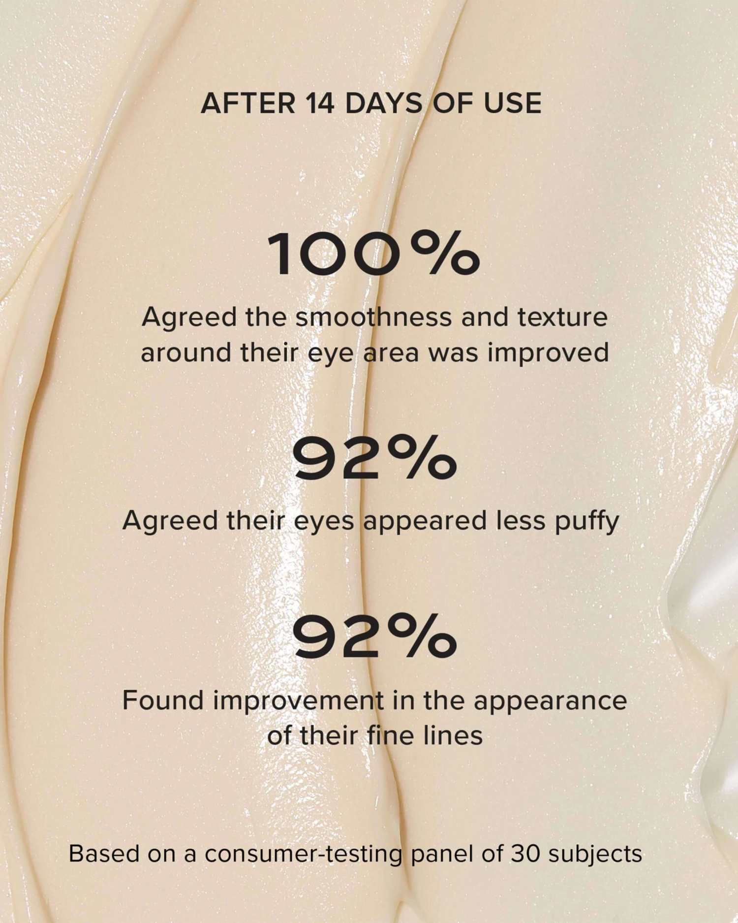 – 100% agreed the smoothness and texture around their eye area was improved